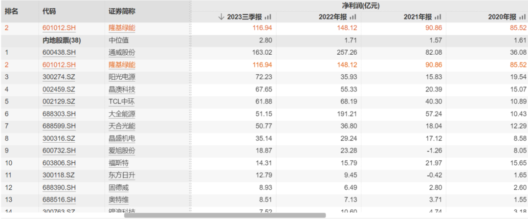 光伏指太阳能转化为电能的过程。太阳能电池可以分为薄膜和晶体硅两大类,晶体硅电池是行业主流,占据的份额超过95%,本文仅介绍晶体硅部分。如图所示,晶体硅太阳能产业链是由高纯多晶硅制造、硅片的切割、太阳能电池芯片封装、光伏发电组件封装、系统安装及服务等环节组成的。硅料的生产原材料主要就是石英砂或者石英石,通过提纯形成硅料,不同下游应用对硅料纯度要求不同,如N形电池对硅料纯度要求大于P形电池,纯度越高,生产成本越高。硅料需要借助晶体硅生长设备形成多晶硅和单晶硅,设备主要厂商晶盛机电、京运通;辅材需要坩埚,主要厂商欧晶科技,石英股份。硅料生产的主要厂商:通威股份、协鑫科技、大全能源、新特能源(待上市)硅片是将多晶硅通过拉棒或铸锭技术加工成单晶硅棒或多晶硅锭,并在此基础上将单晶硅棒和多晶硅锭经过线切割机加工等步骤制成,是进一步生产电池片的主要原材料。硅棒切割成硅片,根据形状区分,可以分为晶圆和方形,分别用于半导体芯片和光伏电池。多晶硅VS单晶硅:内部原子结构不同,单晶硅比多晶硅制造工艺更复杂,成本更高,具有更好的电池转化效率182 VS210:光伏用硅片有2个尺寸,182nm和210nm。大尺寸可降低单位成本,而182尺寸与目前的光伏一体化技术适配,磨平了成本差距,因此182尺寸仍被龙头青睐。硅片主要产商:隆基绿能、TCL中环、晶科能源、晶澳科技、弘元绿能电池片是在单晶或多晶硅片的基础上经过制绒、扩散、激光 SE、刻蚀、PECVD、丝网印刷等多个步骤制成,是进一步生产光伏组件的基础材料。P形电池VS N形电池:字母P 和N 分别代表positive和negative,硅片加入的不同的元素形成了不同的电子结构。P形技术难度低,成本低,目前占据主要市场份额,但N形电池转化效率更高,目前看是未来发展方向。太阳能电池组件是光伏产业工业生产部分最终产品,技术含量相对较低,很多厂商电池片自用生产终端组件,通常以组件出货量衡量厂商生产能力。光伏逆变器:光伏逆变器中的功率变换及控制系统将直流电能转化为符合电网电能质量要求的交流电,阳光电源、固德威、锦浪科技等光伏支架:中信博、清源股份、天合光能、爱康科技、意华股份下游光伏电站建设运维:中节太阳能、天合光能、晶科科技、欧普泰、林洋能源、正泰电器。行业内企业普遍在22年利润大增,23年利润增速普遍同比放缓。但可以看到,行业内公司普遍还是有钱赚,只是赚钱增速弱于此前。