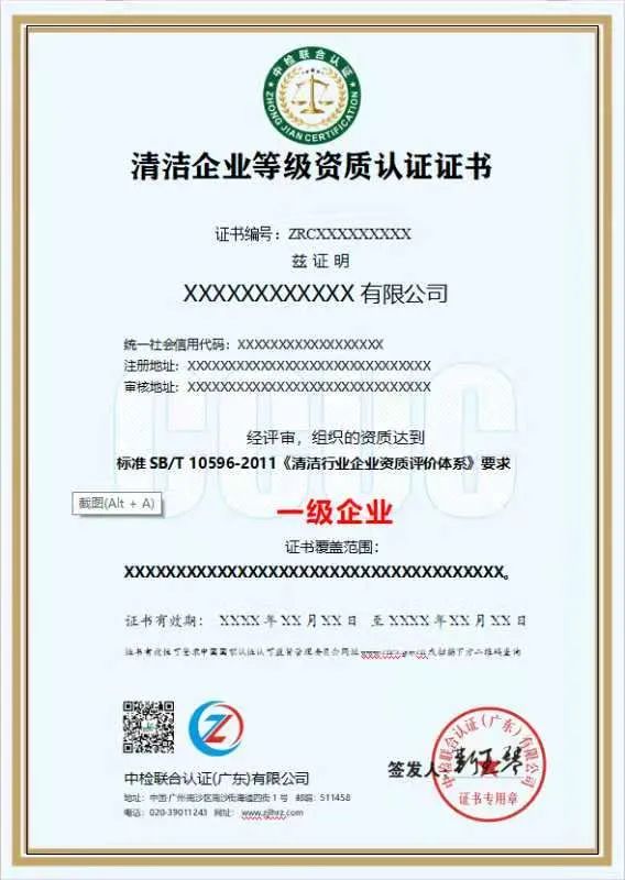 清洁服务认证属于服务认证类别,以SB/T10595-2011标准为认证依据,是对清洁服务企业的服务能力、专业水平所进行的评价。《SB/T10595-2011清洁行业经营服务规范》是清洁行业基础性标准文件,规定了清洁清洗行业的服务范围、领域的划分和管理办法,其构架的评价系统将客观有效地评价企业的水平和实力,引导市场有序竞争和发展。适用于建筑物、构筑物、设施及公共场所、 交通工具(如汽车,船舶等)、类泊、 河流的水草和水质清洁等卫生清洁(请注意不适用于家居保洁),该标准适用范围广,涵盖了几乎全部的日常清洁活动,也是清洁清洗行业一 部关于本行业经营服务规范的标准。认证范围涵盖多种清洁服务领域,可帮助清洁服务企业提高自身技术水平及管理、服务水平,扩展服务内容;是针对清洁服务的大型企事业单位招投标、采购等活动的重要参考和资质要求。打造清洁服务企业自身品牌,赢得消费者认可,通过认证的企业能够客观、量化的展示自己的服务能力,凸显市场竞争力。