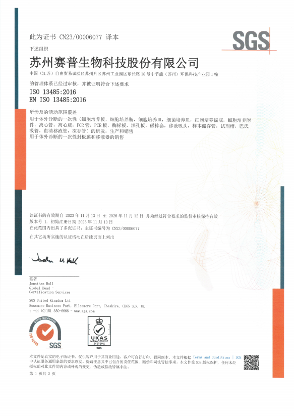 苏州赛普生物科技股份有限公司(以下简称“CellPro 赛普”)是一家中国领先的生物医疗耗材解决方案提供商与制造商,致力于为生物制药行业提供优质的、创新的SUS一次性工艺技术及全面耗材解决方案,广泛服务于抗体、疫苗、细胞和基因治疗等领域,根据不同需求,提供定制化服务。