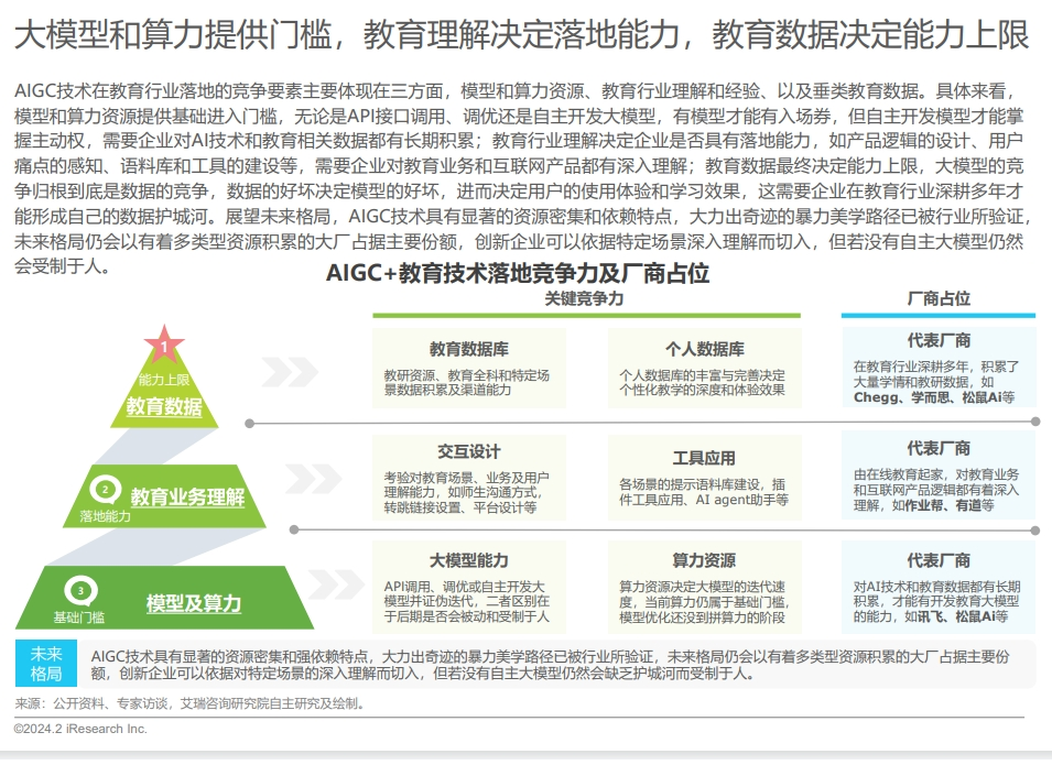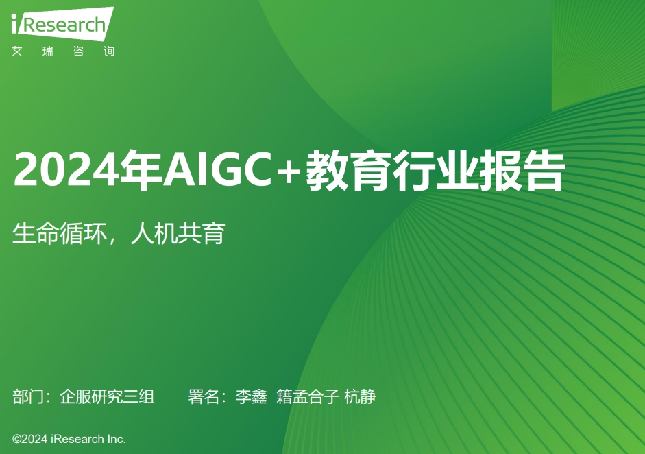 艾瑞咨询重磅发布了《2024年AIGC+教育行业报告》(下简称《报告》),深入剖析了AIGC(生成式人工智能)在教育领域的应用及发展趋势。知学.....