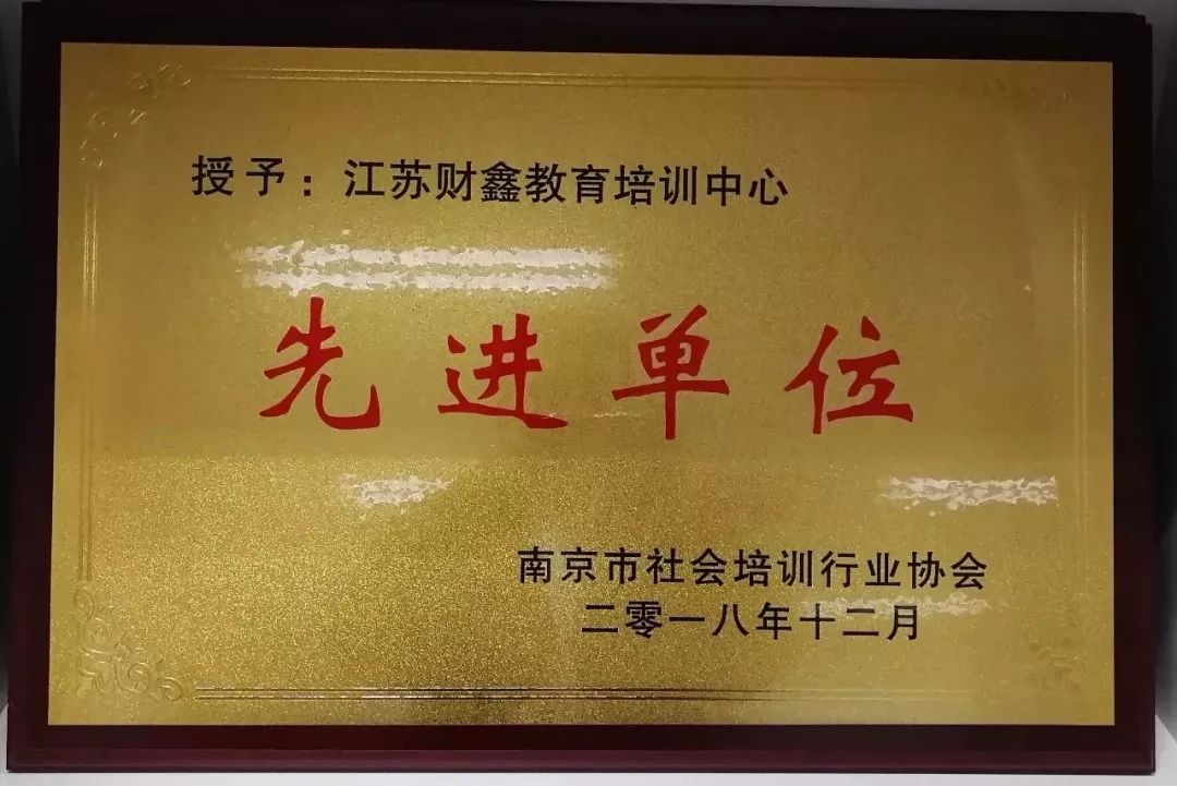 2018年财鑫被南京市社会培训行业协会授予“先进单位”