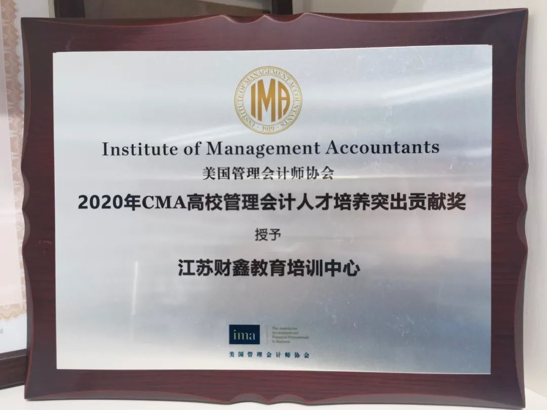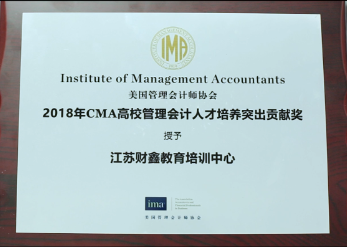 2020年美国管理会计师协会(IMA)授予财鑫教育“CMA高校管理会计人才培养突出贡献奖”
