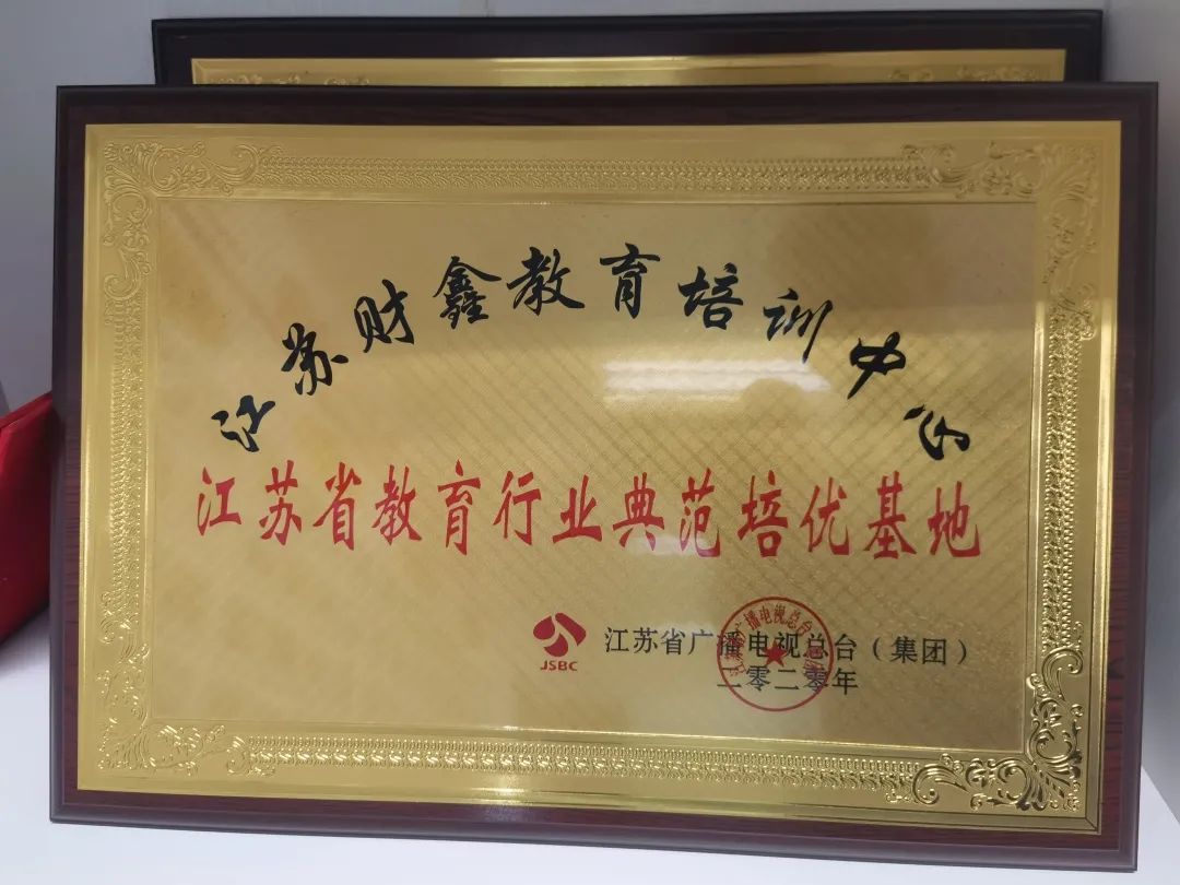 2020年财鑫被授予“江苏省教育行业典范培优基地”