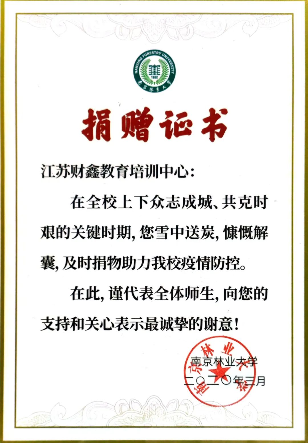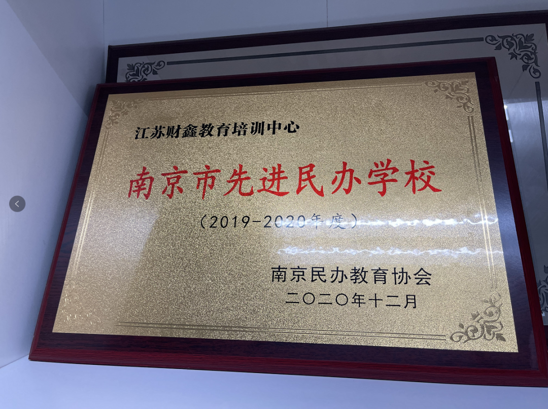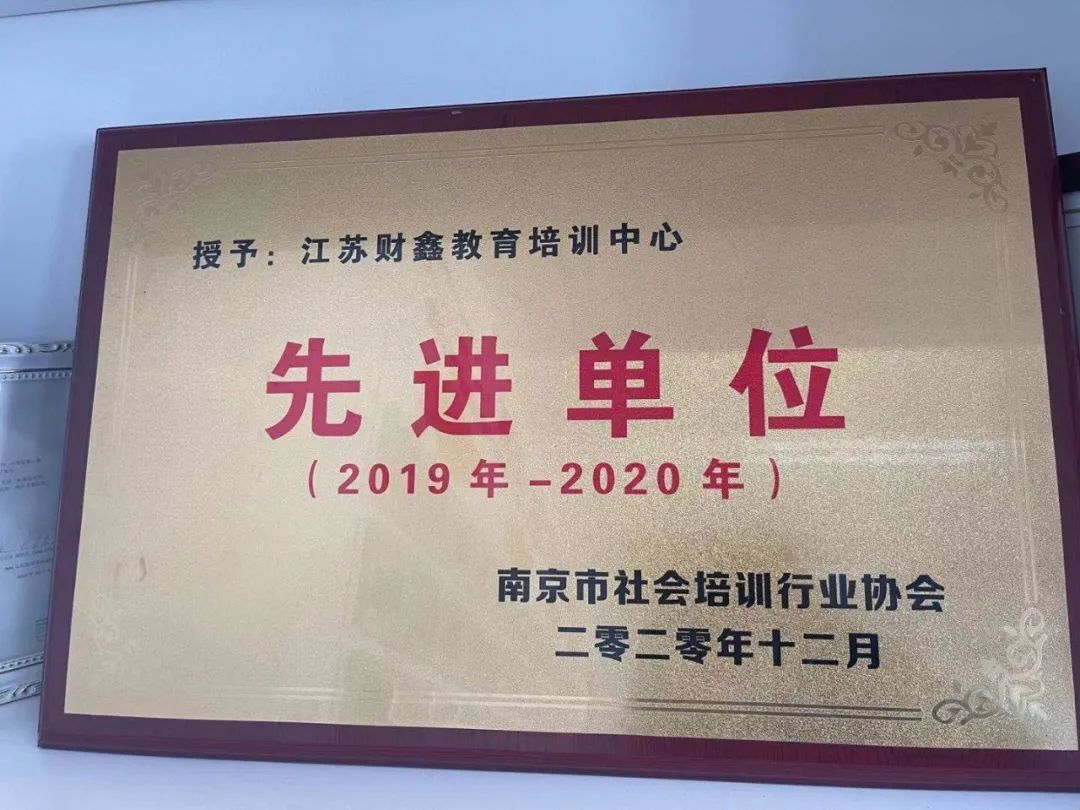 2020年财鑫被南京市社会培训行业协会授予“先进单位”