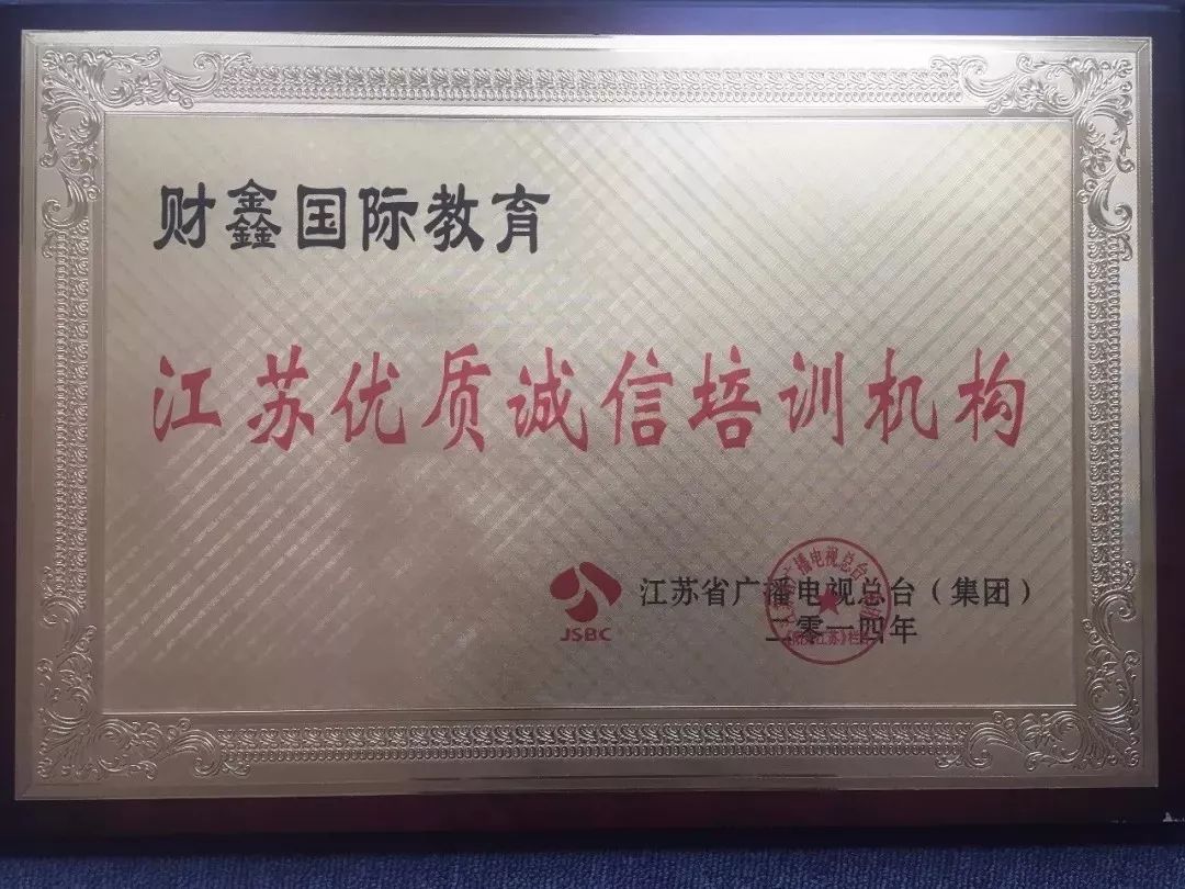 2014年财鑫获得“江苏优质诚信培训机构”殊荣
