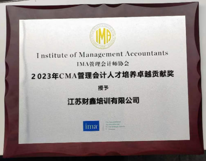 2023年IMA管理会计师协会授予财鑫教育“CMA管理会计人才培养卓越贡献奖”