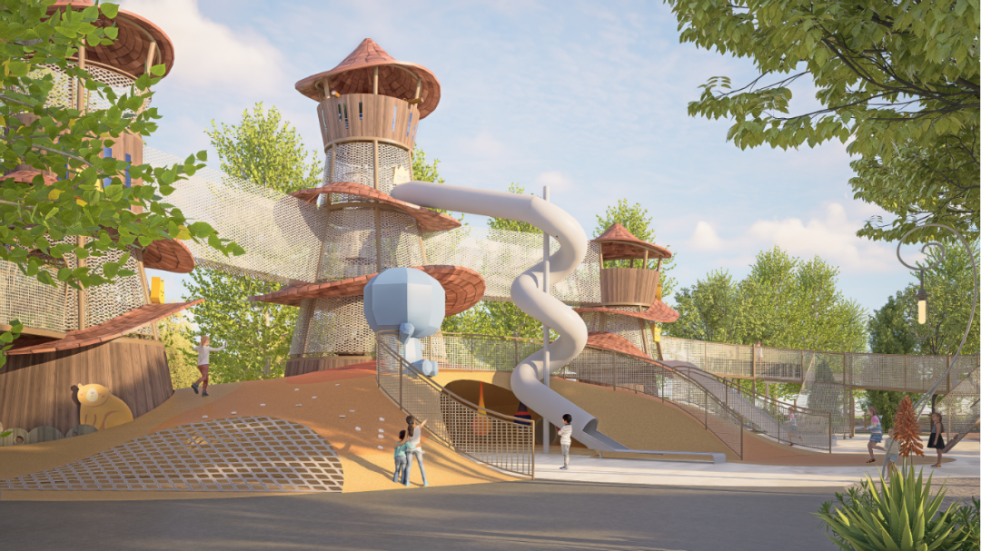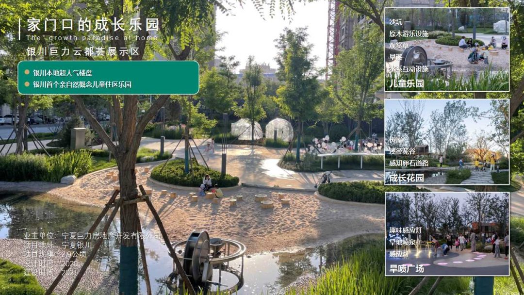 我们在银川巨力云都荟社区打造的社区公园中,结合森林、旱溪、沙滩、树屋等场景,打造居民楼下即可接触的自然场域。
