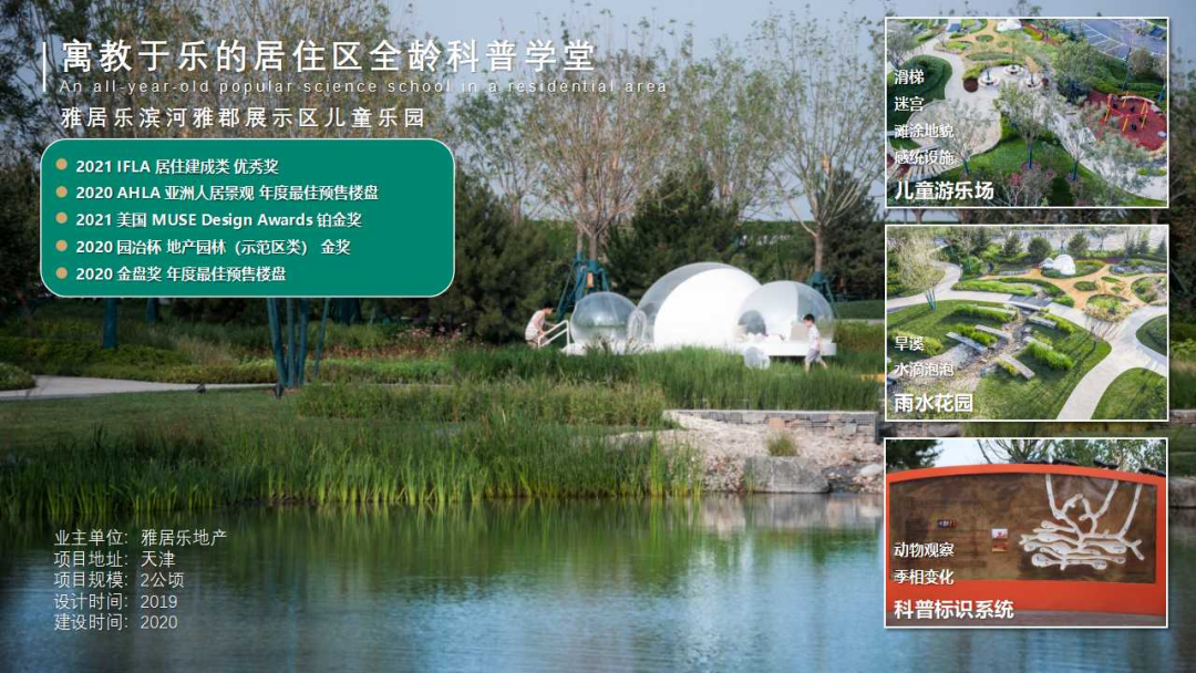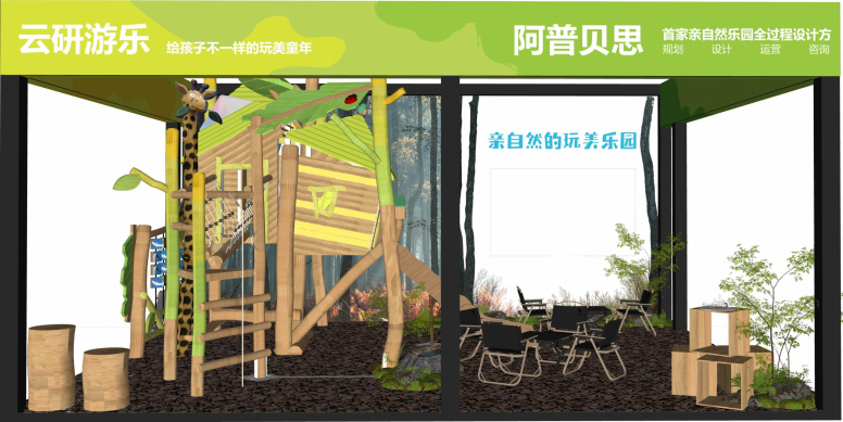 此次联合展位以植、木、石等自然材料,打造纯净、舒适的亲自然空间,其间的渐变树屋,是阿普贝思与云研游乐创意的结晶,集设计与建造的优势,既有阿普贝思对亲自然设计的诠释、对人文可持续空间运营的理解,又有云研游乐精细出品、匠心独运的建造工法。诚邀大家来到展区,共同感受亲自然、可持续设计的乐趣,发现不一样的玩美童年。届时,阿普贝思总裁、创始人邹裕波受邀2024中国旅游休闲娱乐产业年会系列主题论坛,并将于2024年3月21日14:00-17:00于2024中国文体旅无动力新业态发展论坛发表主题演讲。阿普贝思景观设计(UP+S)成立于 2006 年,总部位于北京,拥有中国风景园林工程设计甲级资质、国家高新技术企业资质。我们统合“空间+活动+产品+社群+流量”,专注空间设计、场景营建、IP 文创及自然教育等内容定制开发,提供“设计、建造、运营(EPC+O)”一体化服务体系。阿普贝思亲子文旅部,是亲自然无动力乐园全过程营造专业团队,致力于将亲子乐园的建造和运营前置于策划设计阶段,系统构建可持续运营亲子乐园。赋能综合文旅、景区、公园等城市更新改造项目。我们关注孩子的成长环境,致力于打造创新舒适的亲子文旅、综合市政、海绵生态、健康居住等“一站式”亲自然场景。致力于成为儿童环境创想家,给孩子们浪漫欢乐的童年。作为可持续设计理念践行者,我们将低影响开发(LID)、低碳材料、低维护策略、雨水花园等十余项专利技术作为企业研发基础,结合“儿童友好”、“碳中和”、“海绵城市”等政策,形成独具特色的“可持续+亲自然”业务策略和产品方向。尊重自然、依靠自然、利用自然法则——是阿普贝思的本源精神。让自然回归城市,让孩子回归自然。在曾经的北京游乐园所在地、现人气公园龙潭中湖,我们结合城市公园焕活需求及场地自然特性,因地制宜开创“自设计、自运营”项目——阿奇瑞亲自然乐园。园区划分为四大区域:以3-6岁儿童感知探索为主的趣玩区,以6-9岁儿童运动拓展为主的拓展区,以剧场及配套服务为主的综合区,以感知和体验、植物种植为主的菜园区。在充分考虑儿童成长特性的基础上,满足全年龄段人群的使用。设计保留了场地内独特的自然肌理:旱溪、森林,没有砍伐一棵树;采用自然材质进行铺地:树皮、松针、砂砾、石子……可感知不同自然物质的触感。全园共有18个体验场景,可进行游学、展演、自然教育等活动,开发日夜游乐模式、四季游娱景观,春观花识草,夏自然探险,秋采摘收获,冬冰雪夜游,为北京居民打造一处人文亲子娱乐场域,丰富市民休闲生活,开创户外亲自然娱乐新模式。天津雅居乐滨河雅郡亲自然花园