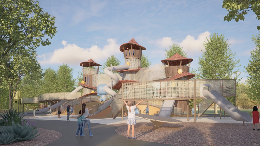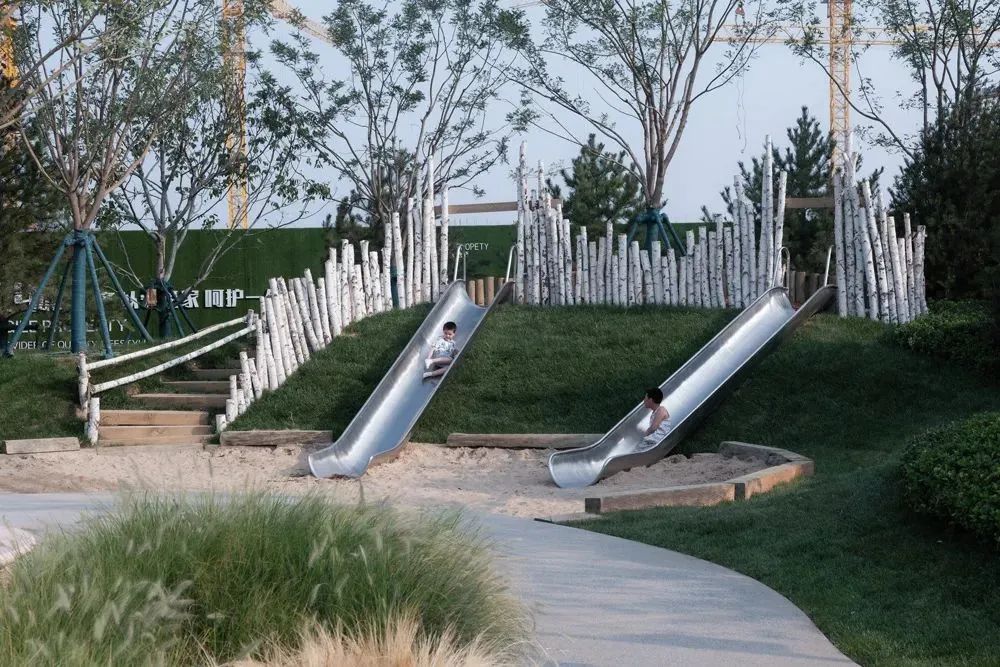 花园游戏场模拟渤海湾丘陵、树林、滩涂地貌,将滑梯建在小丘树林中,用旱溪串联活动场地,孩子每日接触自然,在游戏中感知生长的土地,热爱自己的家园。银川巨力云都荟社区公园