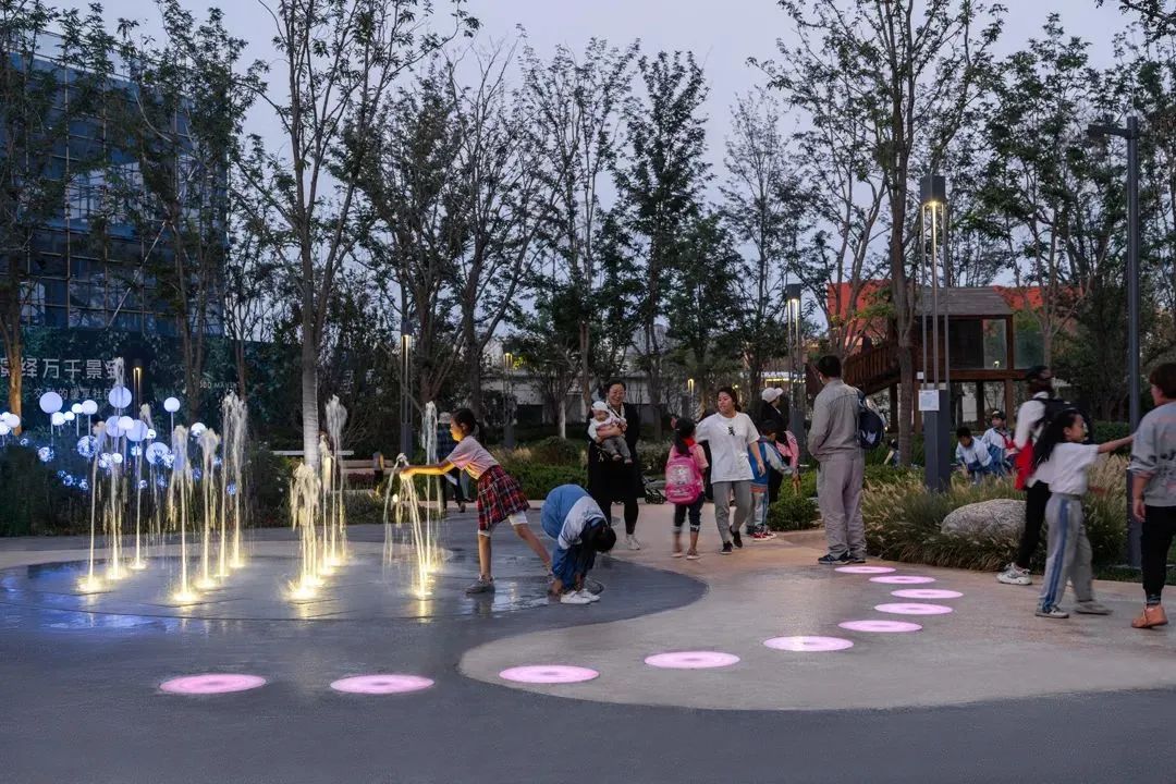 在森林中的树屋游戏、与户外课堂的鸟儿、松鼠成长,感应式灯光喷泉为社区带来活力。这里既是孩子的成长乐园,也是大人的快乐世界。