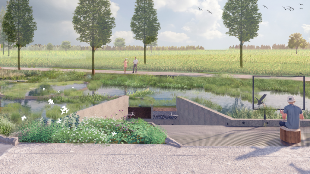 水下观察径和湿地观察仓结合独特的下潜式设计,呈现水体的真实生境,科普展板深入浅出地展现湿地环境。自然教育课堂依水而成、依林而建,游人们在自然中游憩,获取更多互动和感悟。