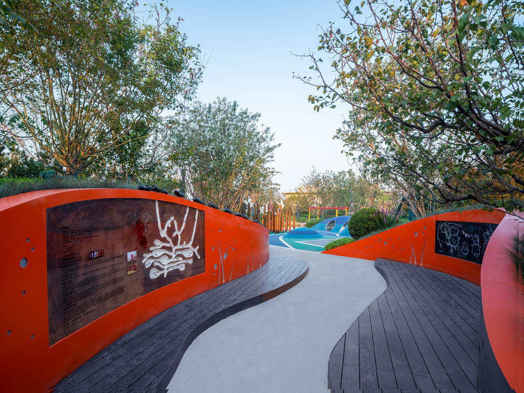 作为文旅人居项目,设计放眼全域,依托水脉、绿脉、文化底蕴,将生态精神融入社区,利用现状水塑造海绵水系,做低影响、低维护社区公园。营造宜居场域,修复环境,使居民生活在自然之中。利用木、石、砂砾等自然材料,打造具有科普性质的亲自然花园,结合阿普贝思独家研发的亲自然解说系统,让居民们在日常中了解自然,树立生态环保意识。