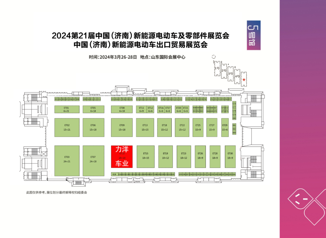 我们将在山东国际会展中心5号馆的ET-10展位与大家见面,详细位置和展位概念图请参考下图: