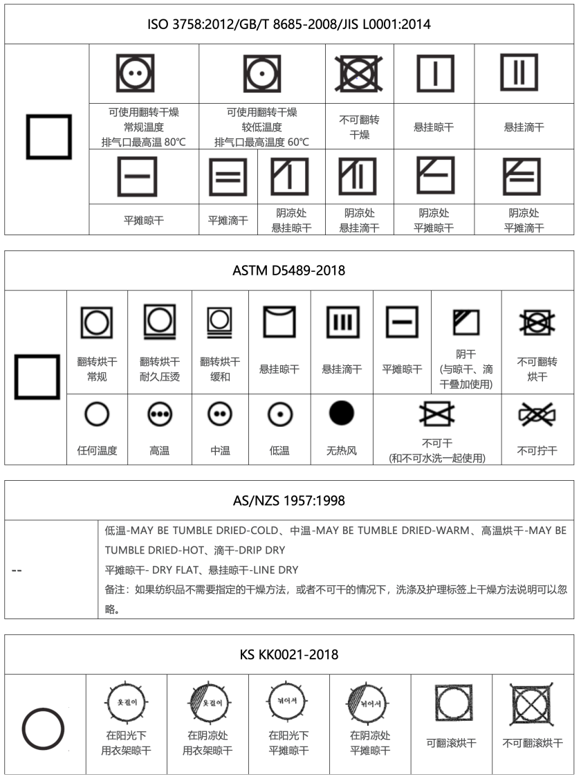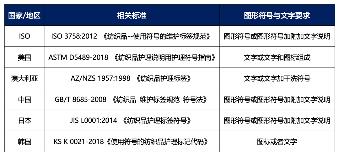 接下来,让我们一起来看看几个主要国家/地区的纺织品洗涤护理标签要求。