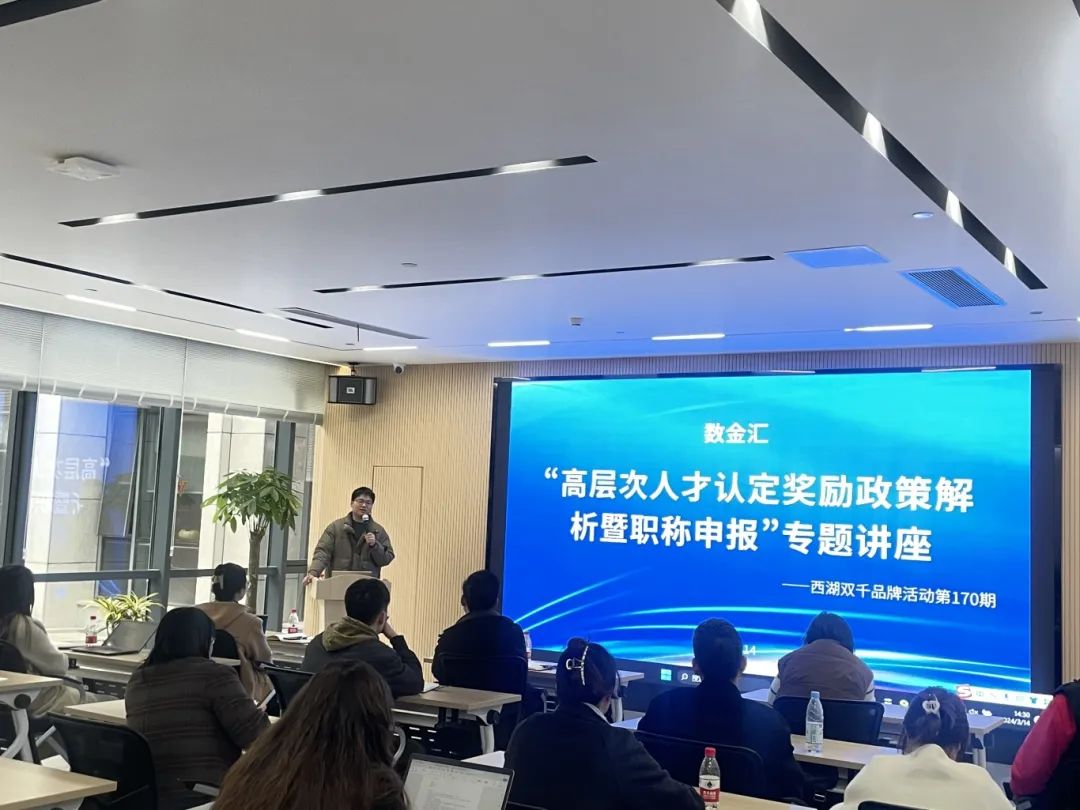 3月14日下午由古荡街道楼宇商圈、古荡街道商会举办的“高层次人才认定奖励政策解析暨职称申报”专题讲座在古荡街道会客厅开讲,本次活动近30家企业相关负责人、HR参加。