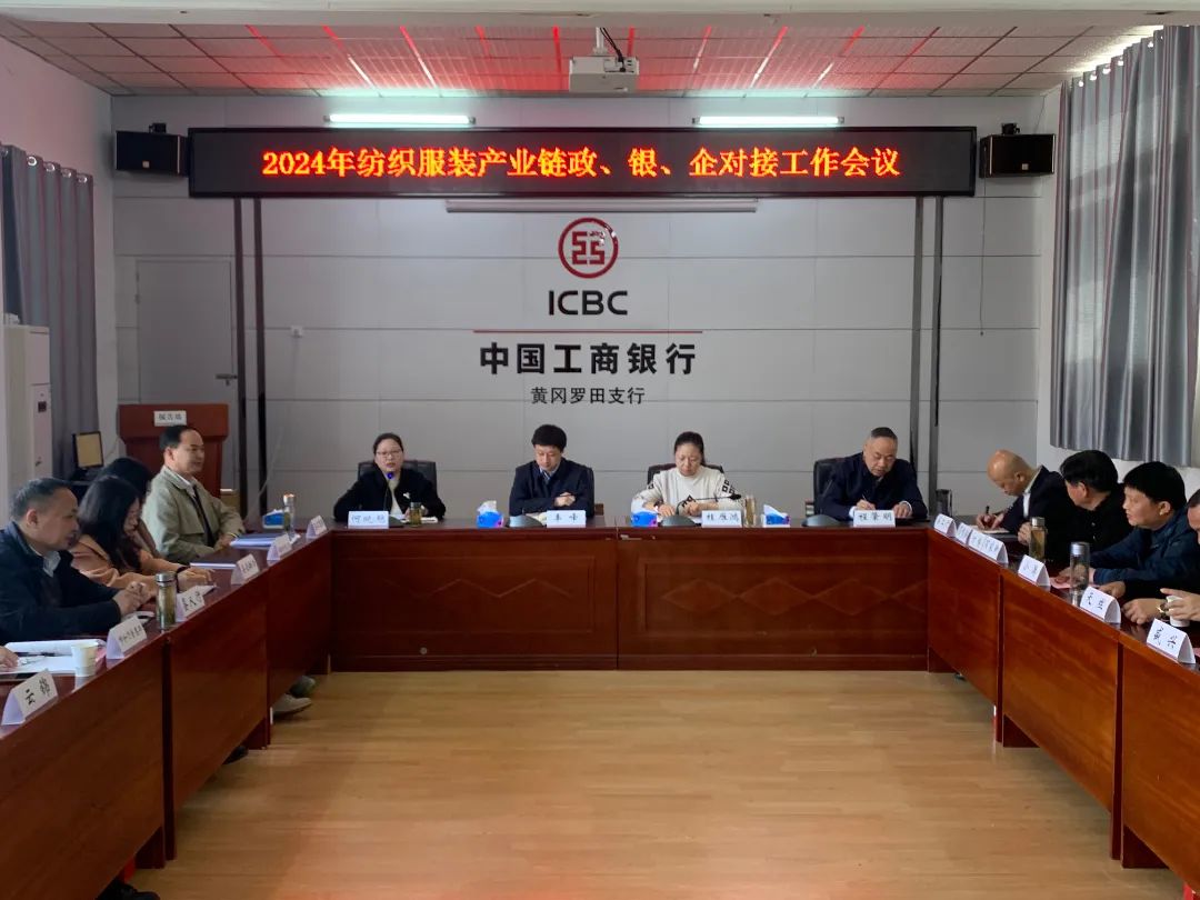 3月14日上午,县工商联、县政协经济委共同组织的县纺织服装产业链政、银、企对接工作会议在县工商银行召开。县委委员、县委统战部部长、县纺织服装产业链链长丰峰,县政府副县长桂雁鸿,中国工商银行黄冈分行副行长程肇明出席会议,县政协副主席、县工商联主席、县纺织服装产业链副链长何晓艳主持会议。