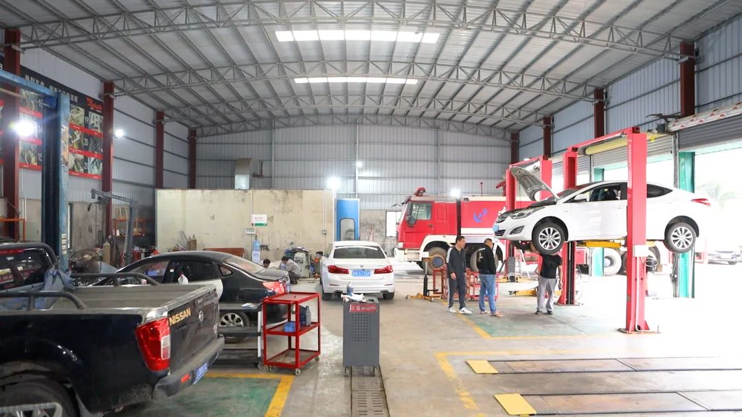 在许总的带领下,大家先后参观了湛江市赤坎区新协和创建汽车服务有限公司展厅、办公室、维修和保养车间。