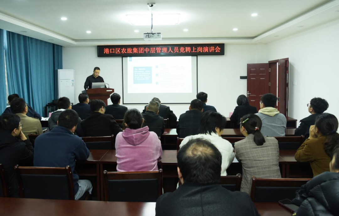 为进一步集团公司优化干部队伍结构,增强各类岗位人员队伍的生机和活力,提升公司经营管理水平。2024年3月15日,港口区农旅集团成功开展中层管理人员竞聘上岗演讲会。集团党委书记、董事长谢玉星同志出席演讲会并讲话,集团各部门、子公司员工代表20余人到场观摩学习。