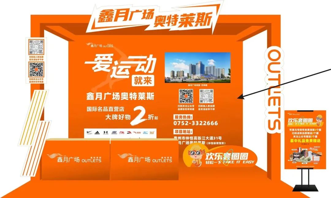 鑫月广场奥特莱斯展位设置欢乐套圈圈活动啦,套中礼品免费赠送。参与现场活动,有机会把以下礼品带回家哦:耐克运动鞋、运动背包、羽毛球拍套装、定制保温杯等