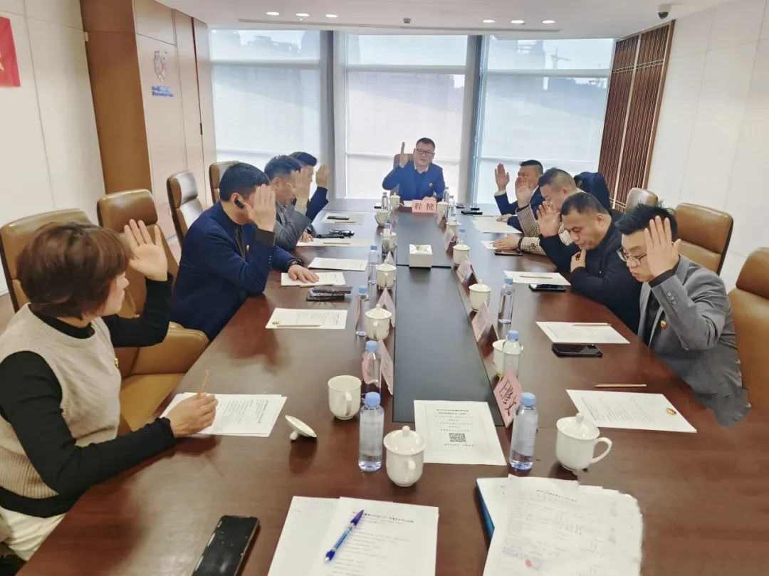 会议以举手表决方式,全票通过,同意吸收卢文涛等成员为新会员,会议还对商会近期应讨论的其他若干重大事项进行了举手表决,并一致通过表决。