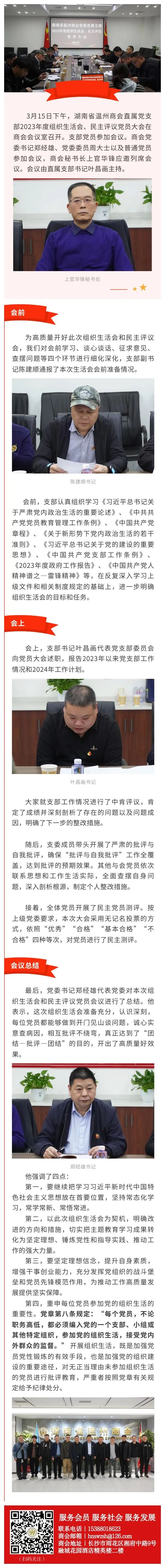 湖南省温州商会党委直属党支部召开2023年度组织生活会和民主评议党员会议
