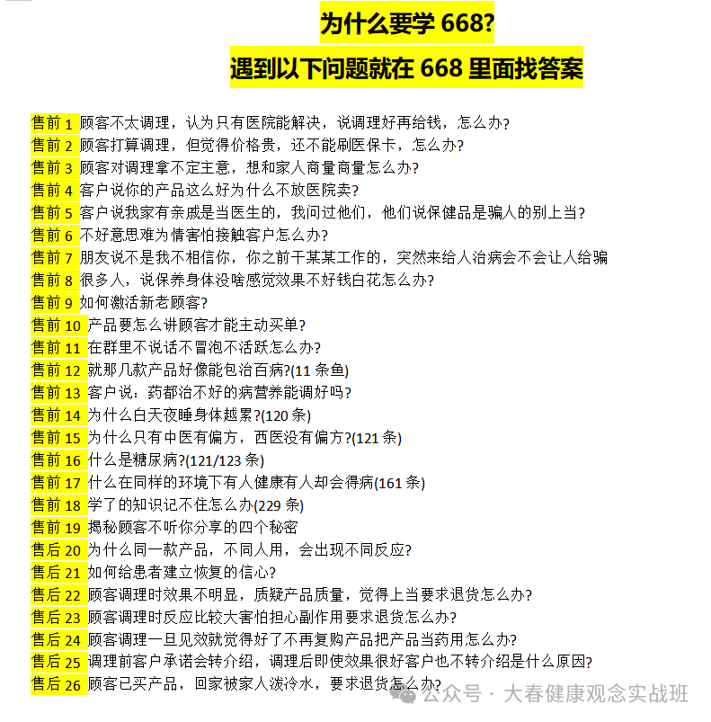 一、主课程 :解决疾病与健康的区别 ,中西医的区别,这种疾病的原理 ,以及疾病调理的方向 ,并且解读治和调的区别,破除我们市场的八大抗拒