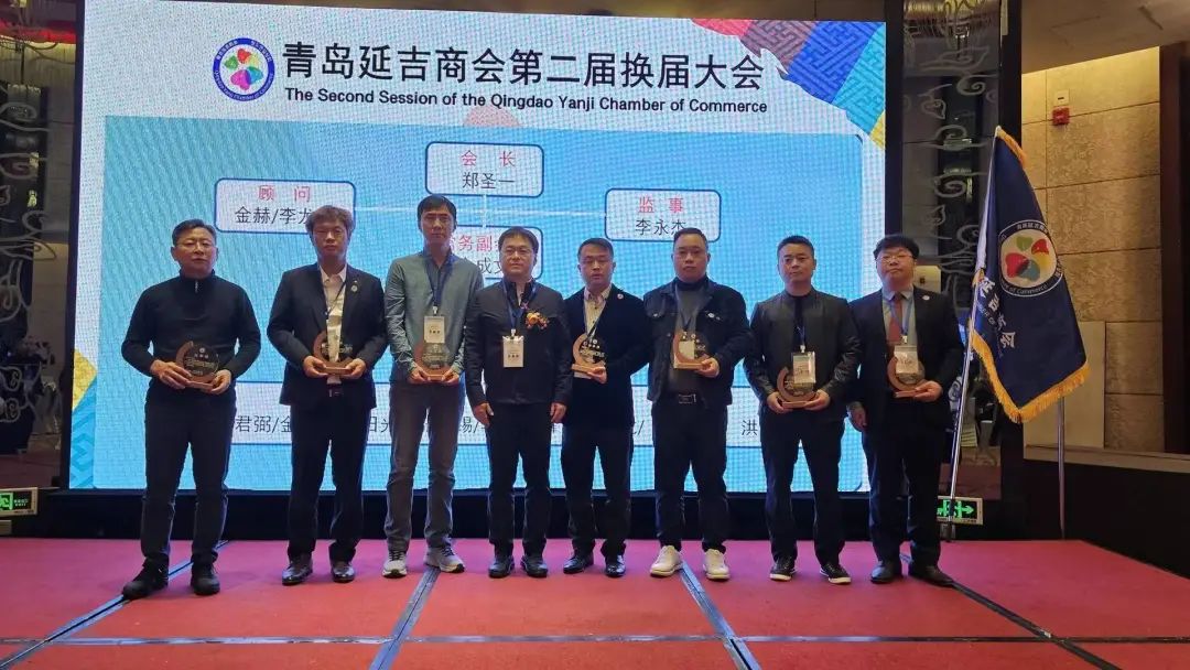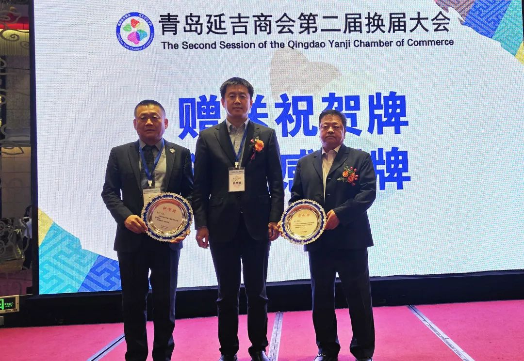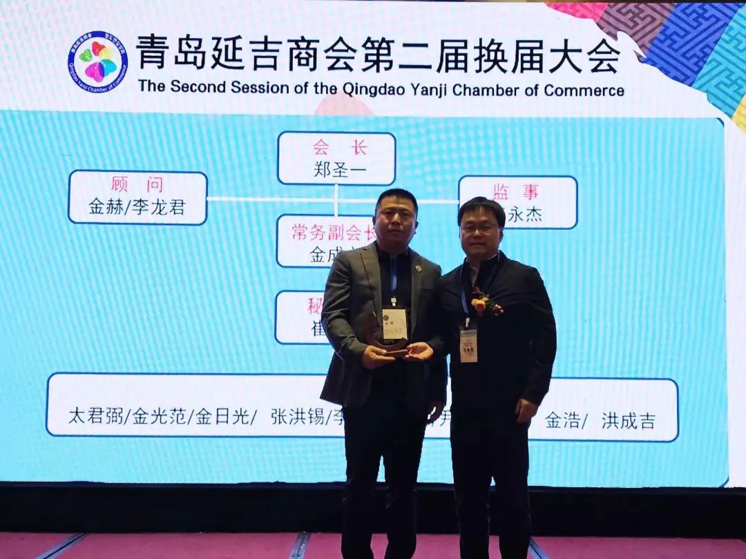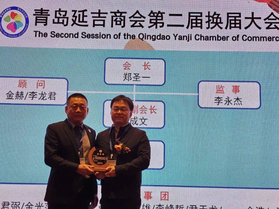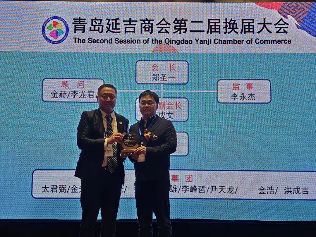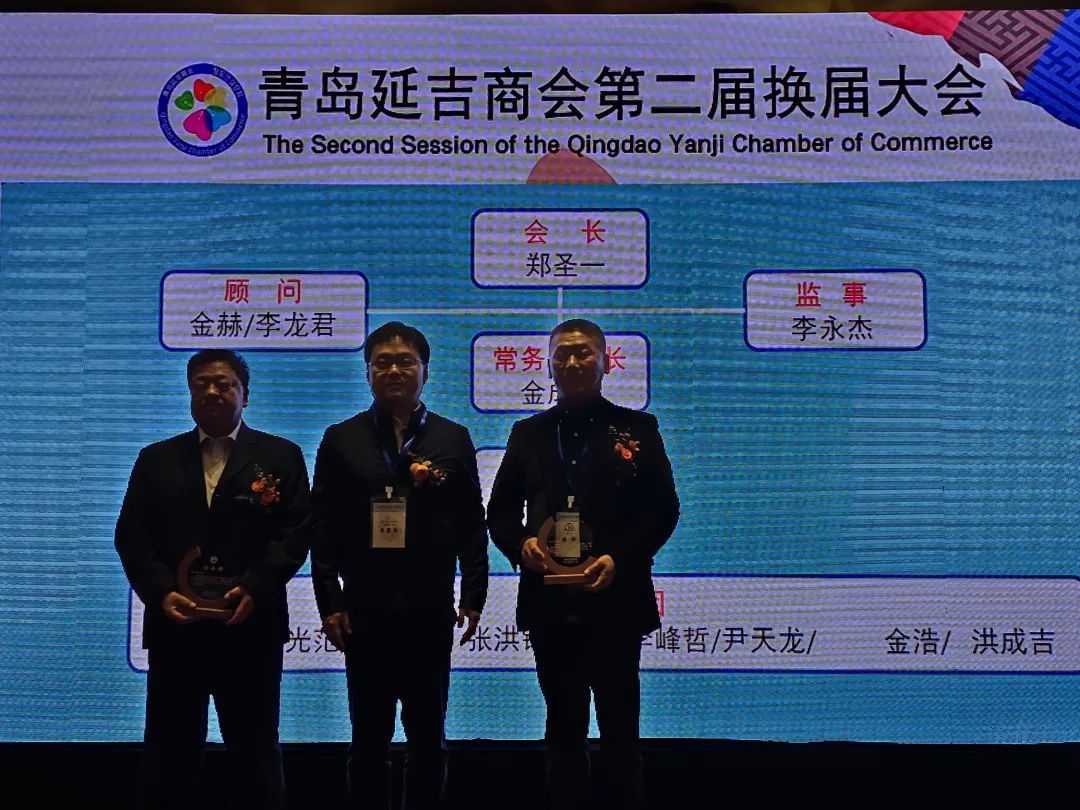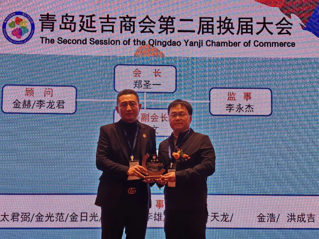 大会第四项,延吉市商务局局长辛星海向青岛延吉商会第二届会长郑圣一;常务副会长金成文;顾问金赫、李龙君;监事李永杰;秘书长崔明浩;理事金日光、太君弼、尹天龙、金浩、张洪锡、李峰哲、金光范、洪成吉、李雄颁发任命牌。