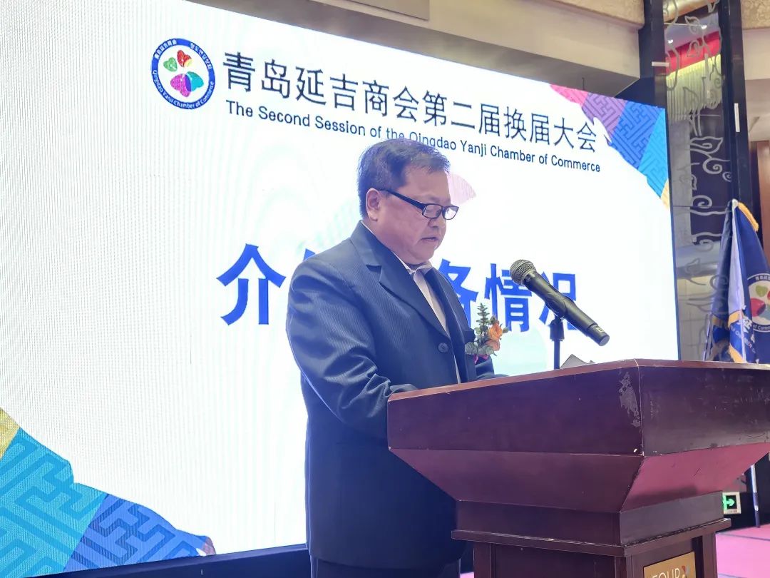 大会第三项,青岛延吉商会第二届换届筹备组主任李龙君上台作了筹备工作报告。李龙君主任的报告首先介绍了本次换届背景,称因疫情等客观原因未能按章程规定如期换届。其次,李龙君主任介绍换届过程中先后召开三次筹备会议的具体情况。最后,向为本次换届大会默默付出的筹备组成员表示衷心感谢!