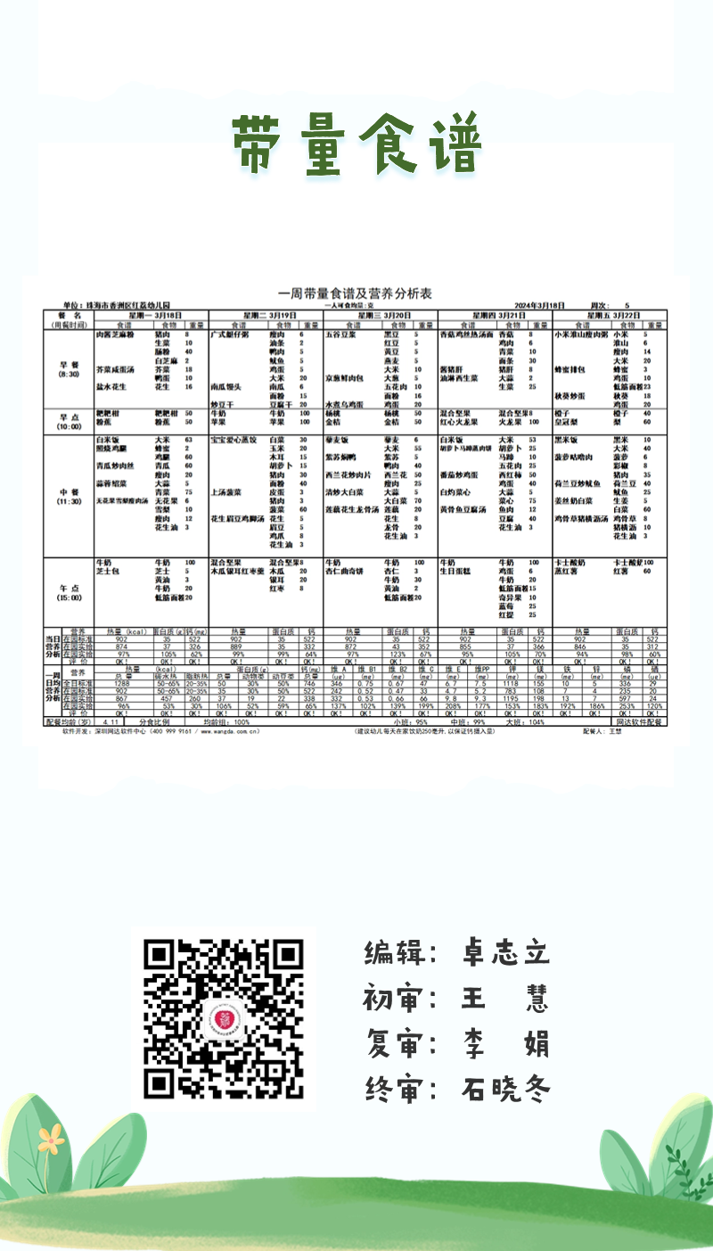 【食在红荔】珠海市共乐幼教集团红荔园区(红荔幼儿园)第五周幼儿营养食谱