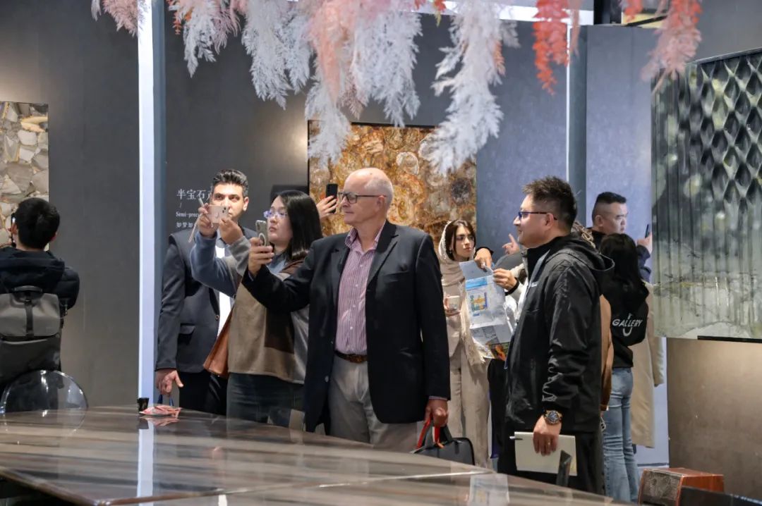 高颜值的展厅设计一经亮相,吸引了众多热爱美石、热爱艺术设计的参观者驻足围观,前来参观交流的客商络绎不绝,成为万众云集的网红打卡点。居高不下的火爆人气,成为整个展馆最靓丽的一道风景线!