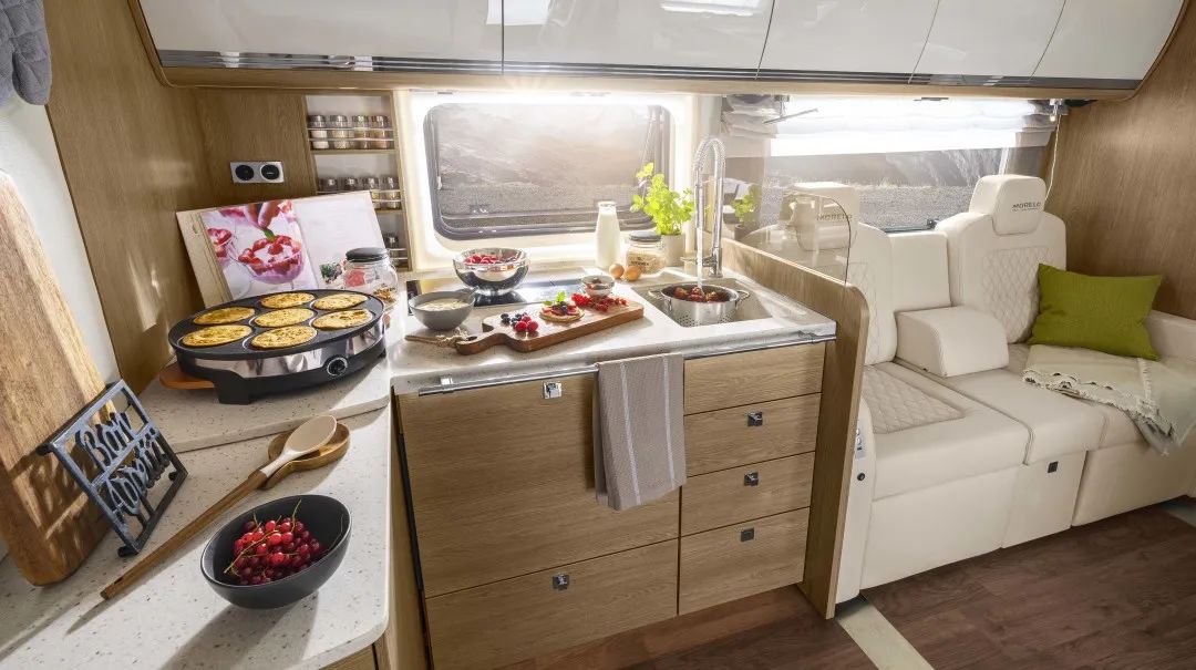 除了高质量,MORELO车辆还有两个主要特点:其一是车身尺寸小,作为豪华房车,其最小长度仅约为8 米;其二是车辆的标准配置就可以达到眼光挑剔的旅客所要求的一切舒适性,堪比居住在高档酒店里。