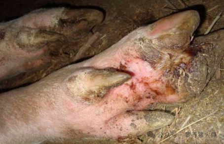 发热,体温身高。口腔和蹄部出现溃疡,从而导致进食困难和步态异常。猪的食欲下降,体重出现减轻的状况。对于幼年的猪仔可能在口腔、舌头和鼻孔周围出现乳头状的结疤。