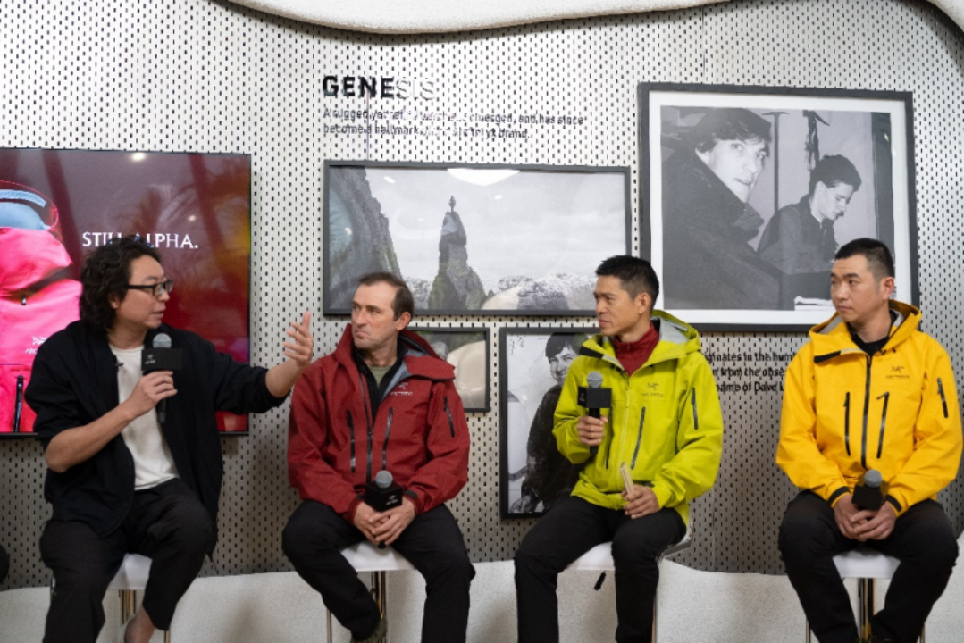 此刻他的身份是始祖鸟运动员,和金冰镐评委及特别奖获奖者 Yannick Graziani、自由攀登者蜗牛(傅勇鹏)和知名作家许知远一起,作为嘉宾被邀请,谈论关于“攀登与Alpha SV的共同进化之旅”的看法。