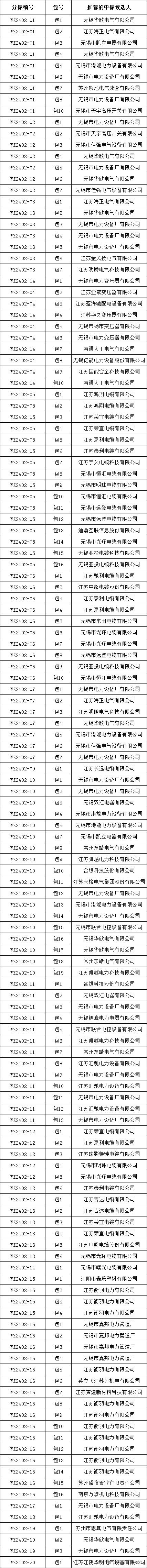 国网江苏省电力有限公司无锡供电分公司2024年第二次产业物资授权公开招标框架协议采购-2评标工作已经结束,现将评标委员会推荐的中标候选人予以公示,公示期3日。投标人或者其他利害关系人若对评标结果有异议的,请在中标候选人公示期间以书面形式提出。