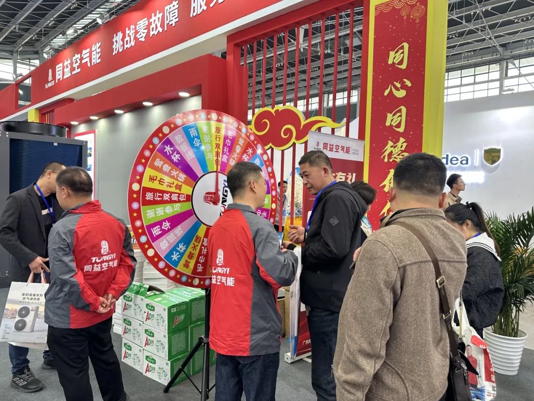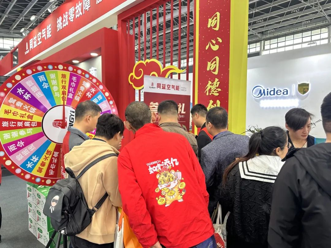 此外,观众在参观同益展位时,不仅能够领略同益空气能的高端产品魅力,更可参与多种互动环节,如扫码赢礼、集赞送礼及幸运大转盘等。同时,还有机会参与同益短视频大赛,通过拍摄并发布与同益空气能相关的短视频,并附上指定话题标签,即有机会赢取丰厚的精美礼品。现场观众热情高涨,积极参与,整个活动现场洋溢着热烈而欢快的氛围。