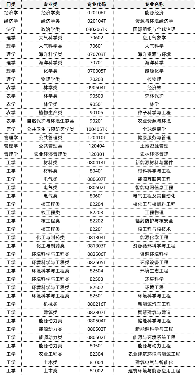那么,与“碳达峰”和“碳中和”领域直接相关的本科专业有哪些?