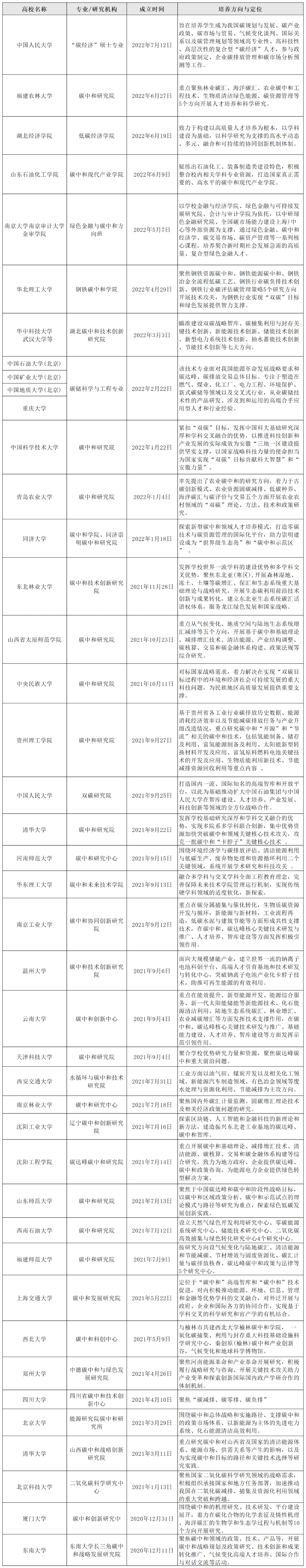 自此各大高校纷纷建立和“双碳”相关学院。