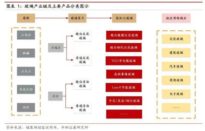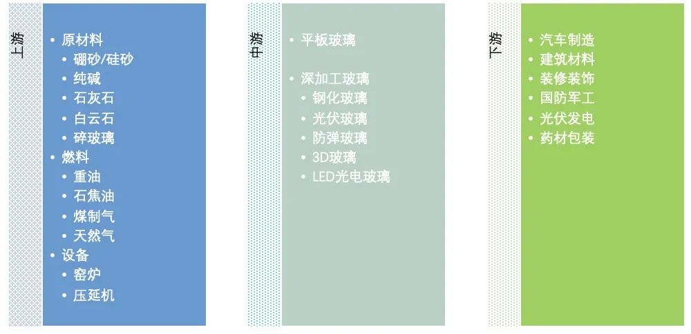 玻璃产业链包括上游原材料、燃料,中游玻璃制造和下游玻璃消费。