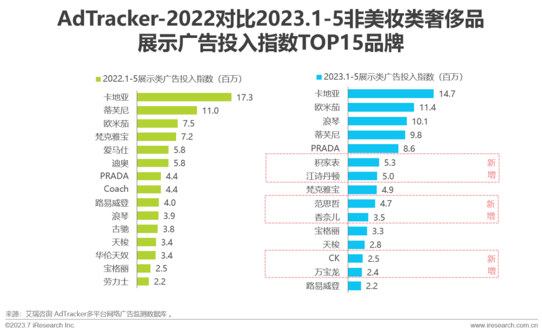 奢侈品行业展示广告恢复增长,主要由非美妆类品牌带动
