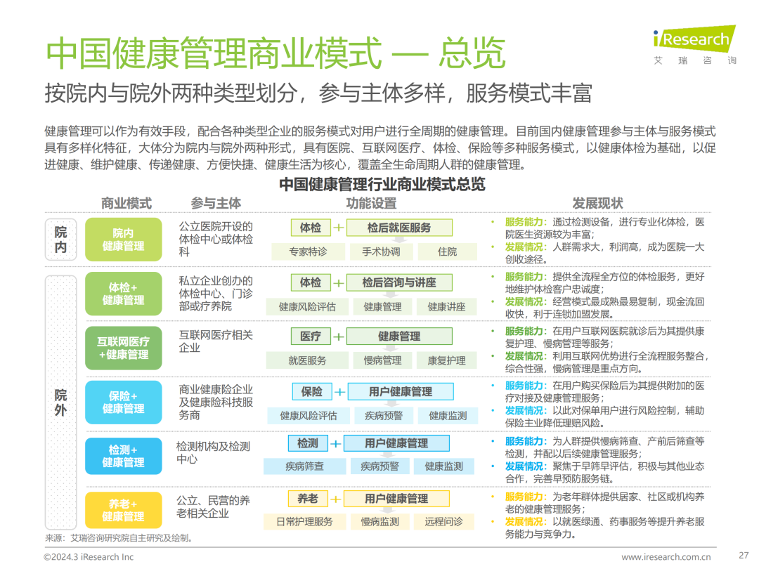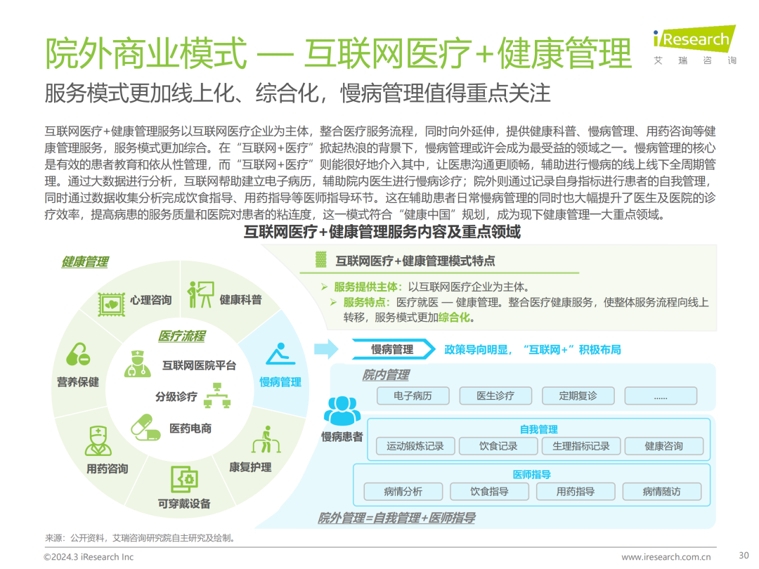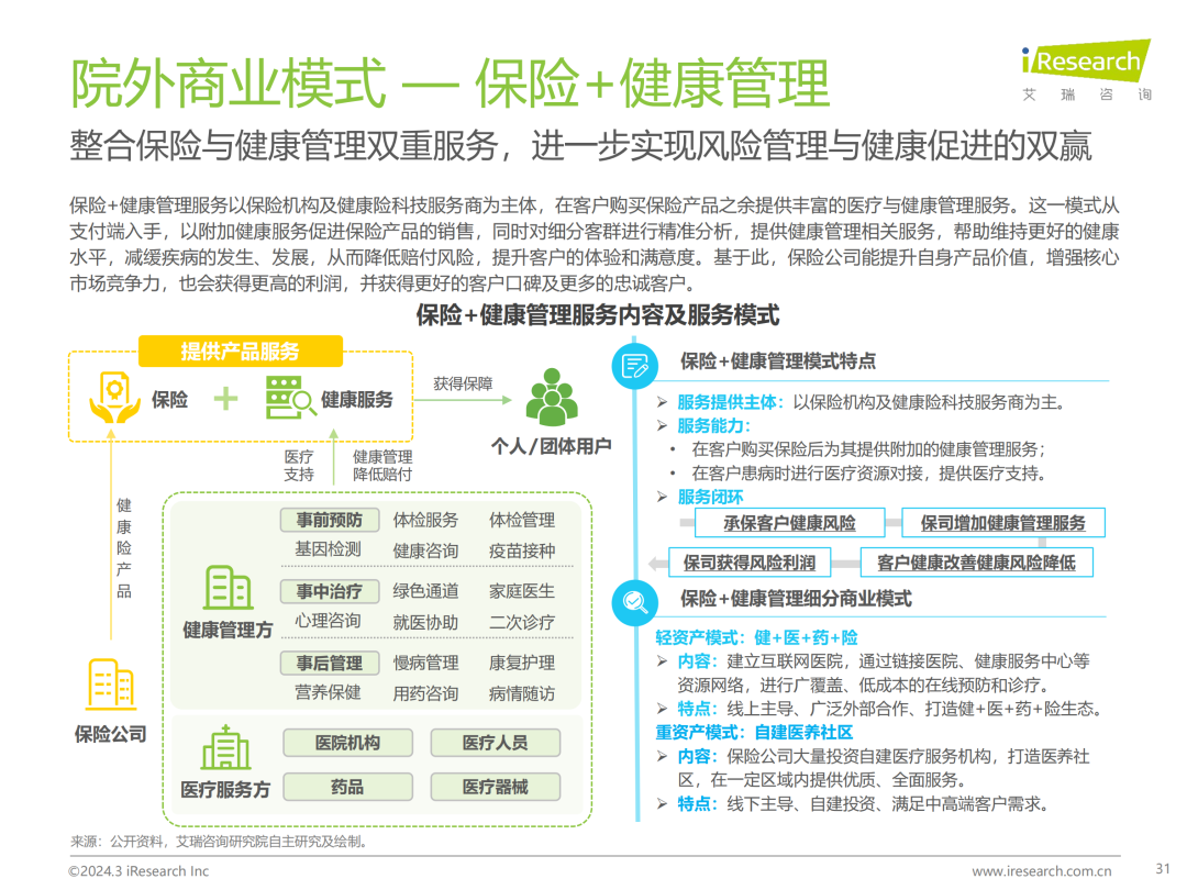 • 院外-保险+健康管理:整合保险与健康服务,实现风险管理与健康促进双赢;