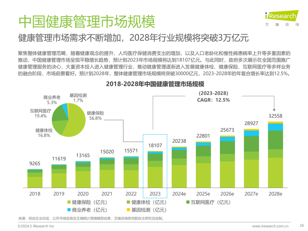 Ø 市场规模:健康管理市场需求不断增加,2028年行业规模将突破30000亿元。