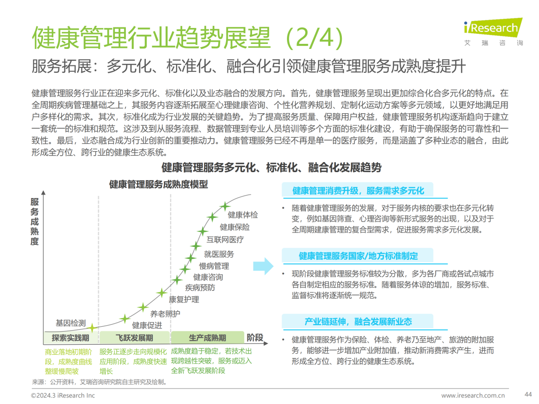 Ø 服务拓展:多元化、标准化、融合化引领健康管理服务成熟度提升。