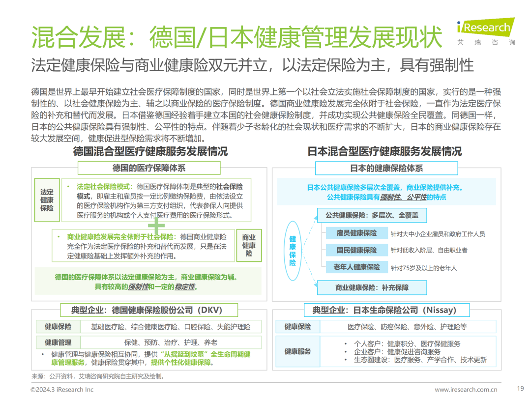 • 混合发展-德日:法定健康险与商业健康险双元并立,以法定保险为主,具有强制性。
