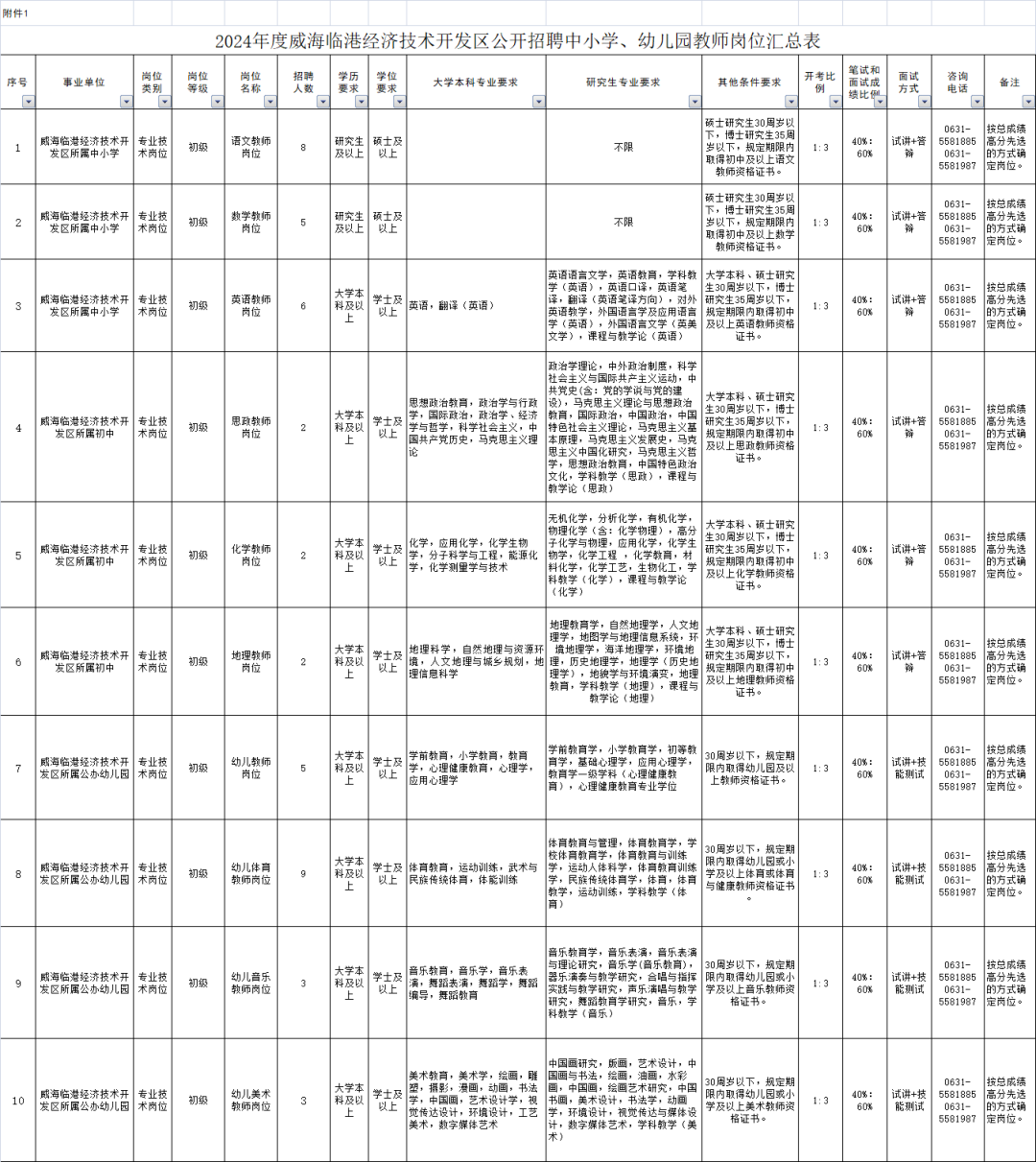 附件:1.2024年威海火炬高技术产业开发区公开招聘中小学教师岗位计划表