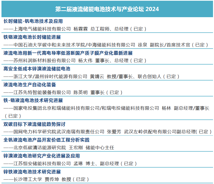 第二届液流储能电池技术与产业论坛2024