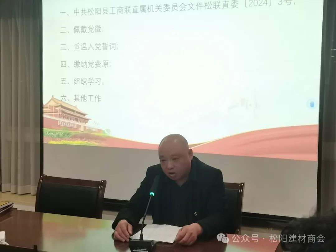 一、由陈可信老师宣读中共松阳县工商联直属机关委员会文件,松联直委〔2024〕3号“关于松阳县装饰装修家居建材商会党支部换届选举结果的批复”同意宋祥林同志为建材商会新一届党支部书记。;