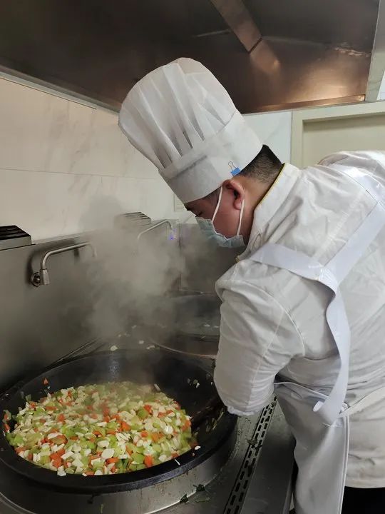 2. 将土豆胡萝卜倒入锅内炒熟;
