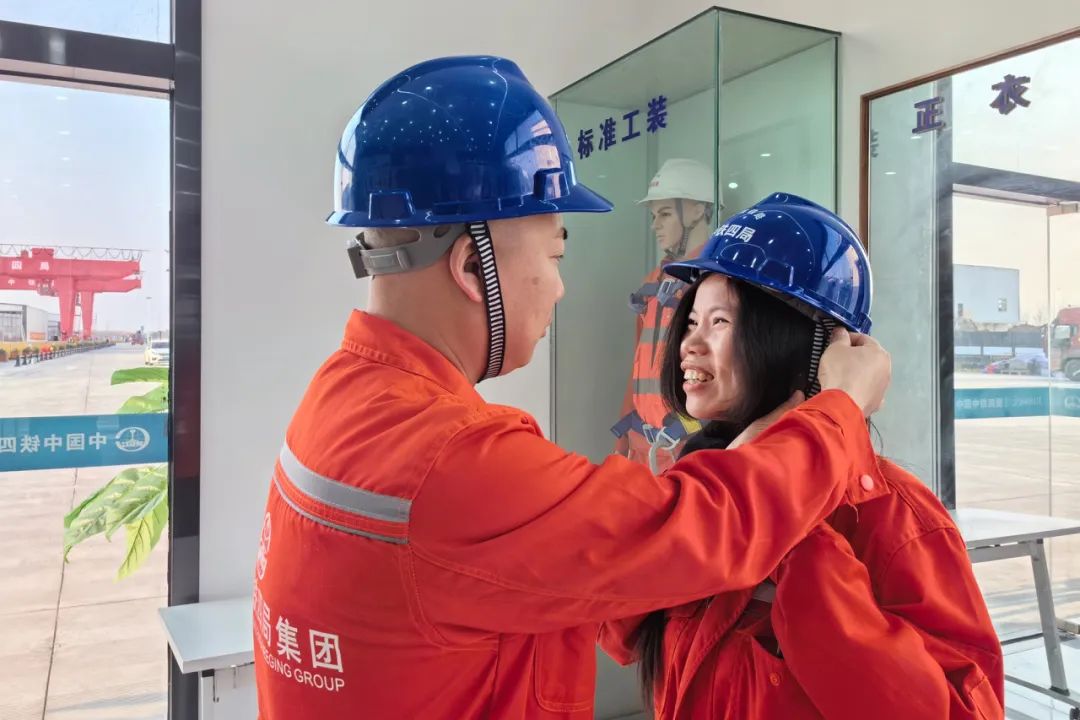 进入工地前,袁鹏总是雷打不动地保持着一个习惯:亲自给锁玮戴上安全帽,扣好安全扣,系好的安全带更是要检查好几遍。一切安全工作准备妥当,进入工地后,听项目管理人员布置今日工作安排和安全注意事项,夫妻俩便奔赴到各自岗位上。