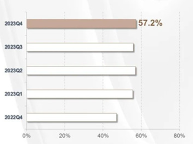2023年全年行业综合景气持续位于扩张区间。根据中国纺织工业联合会调查数据,2023年四个季度纺织行业综合景气指数分别为55.6%、57%、55.9%和57.2%,回升至近年来的较高位水平。
