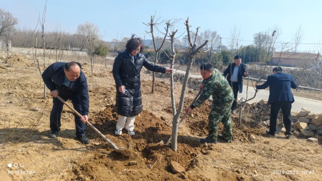 经过一番辛勤的劳作,我们共同见证了100余棵新栽种的树苗迎风挺立,它们绿意盎然,生机勃勃,为初春的郭家村增添了一抹亮丽的风景线。看着这些新生命在土地上扎根,我们内心充满了喜悦与自豪。